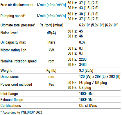 Two-stage rotary vane pump delivers a pumping speed of 114 liters per minute, low noise and a long operating life.