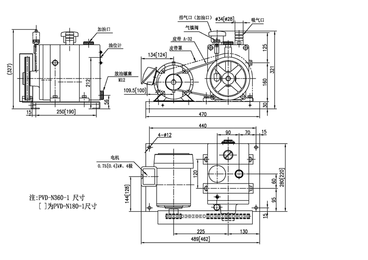 大油量型● 设有底部放油口和专门加油口,便于定期换油● 降低泵的油温,减少油的氧化和劣化,延长油的使用寿命● 降低吸入泵中的蒸气及粉尘所引起的油污染的程度,从而减少油更换的频率,降低使用成本